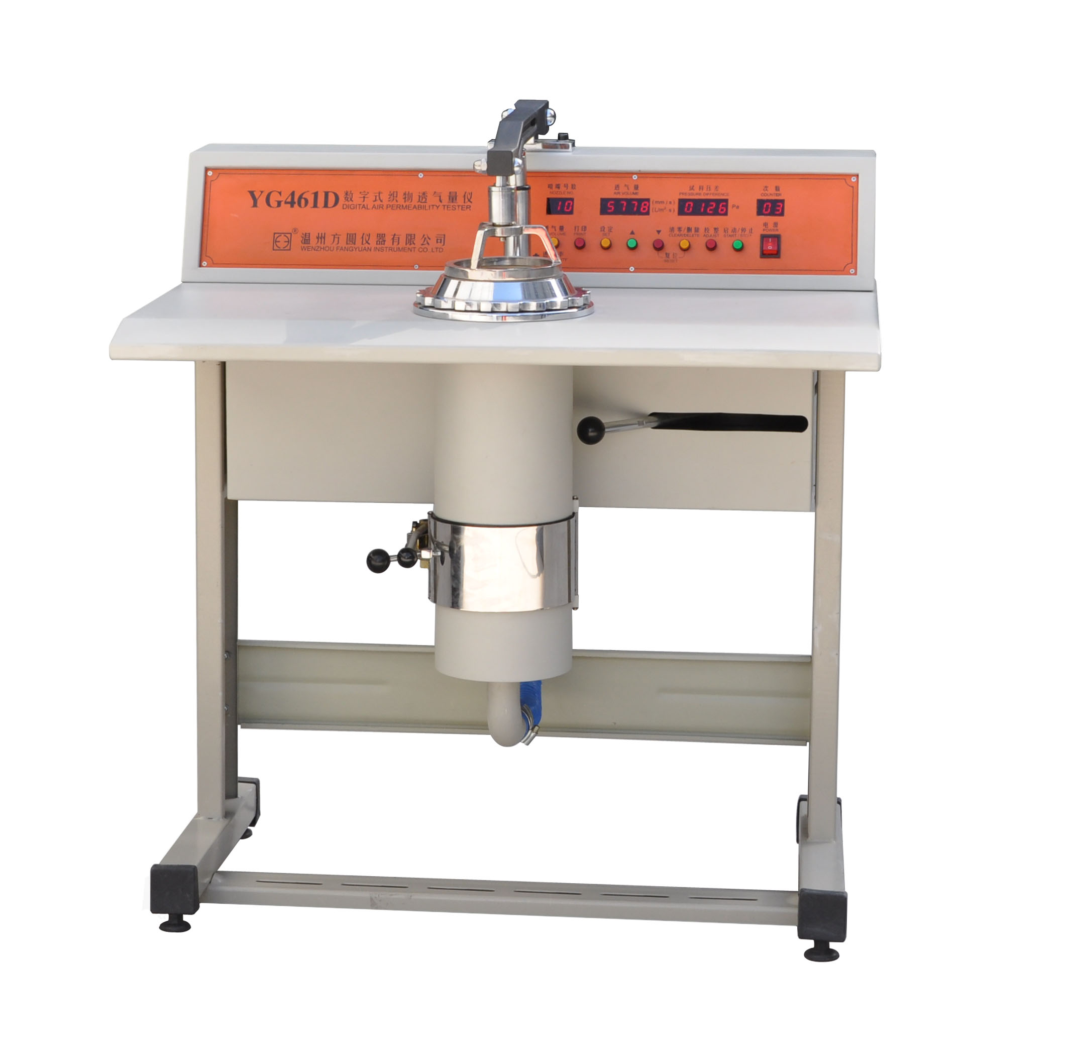 328 YG461D數(shù)字式織物透氣量?jī)x GB/T5453、GB12014-2009、ISO 9237、ASTM D737等標(biāo)準(zhǔn)